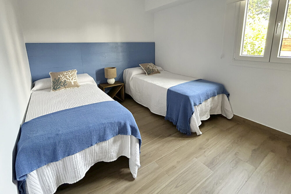Dormitorio principal con cama de 150cm y secundario con 2 camas de 90cm.